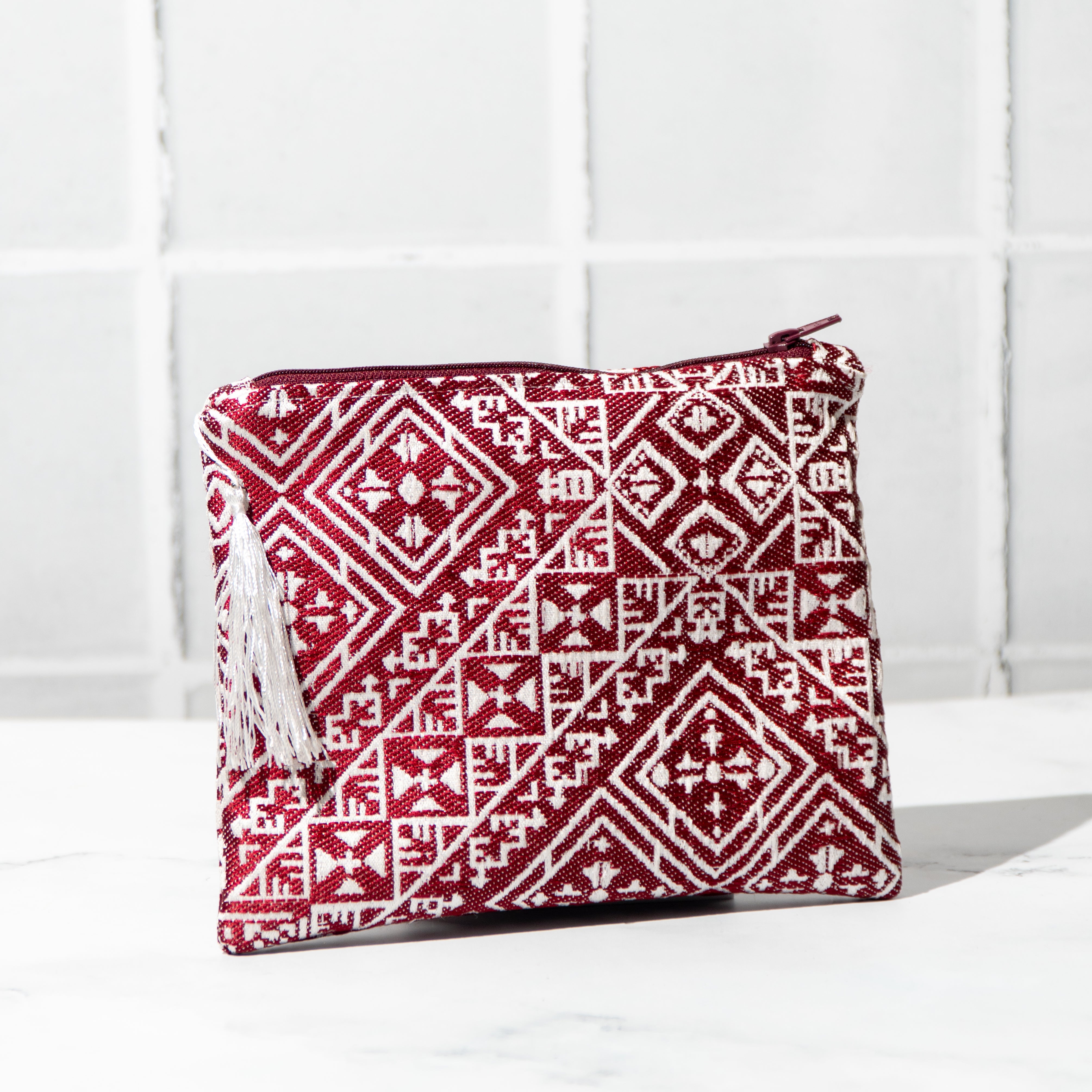 A handcrafted cosmetic bag inspired by Moroccan textiles, offered as a gift in this collection. Ideal for storing beauty essentials or carrying pieces of the Heritage Edition wherever you go.