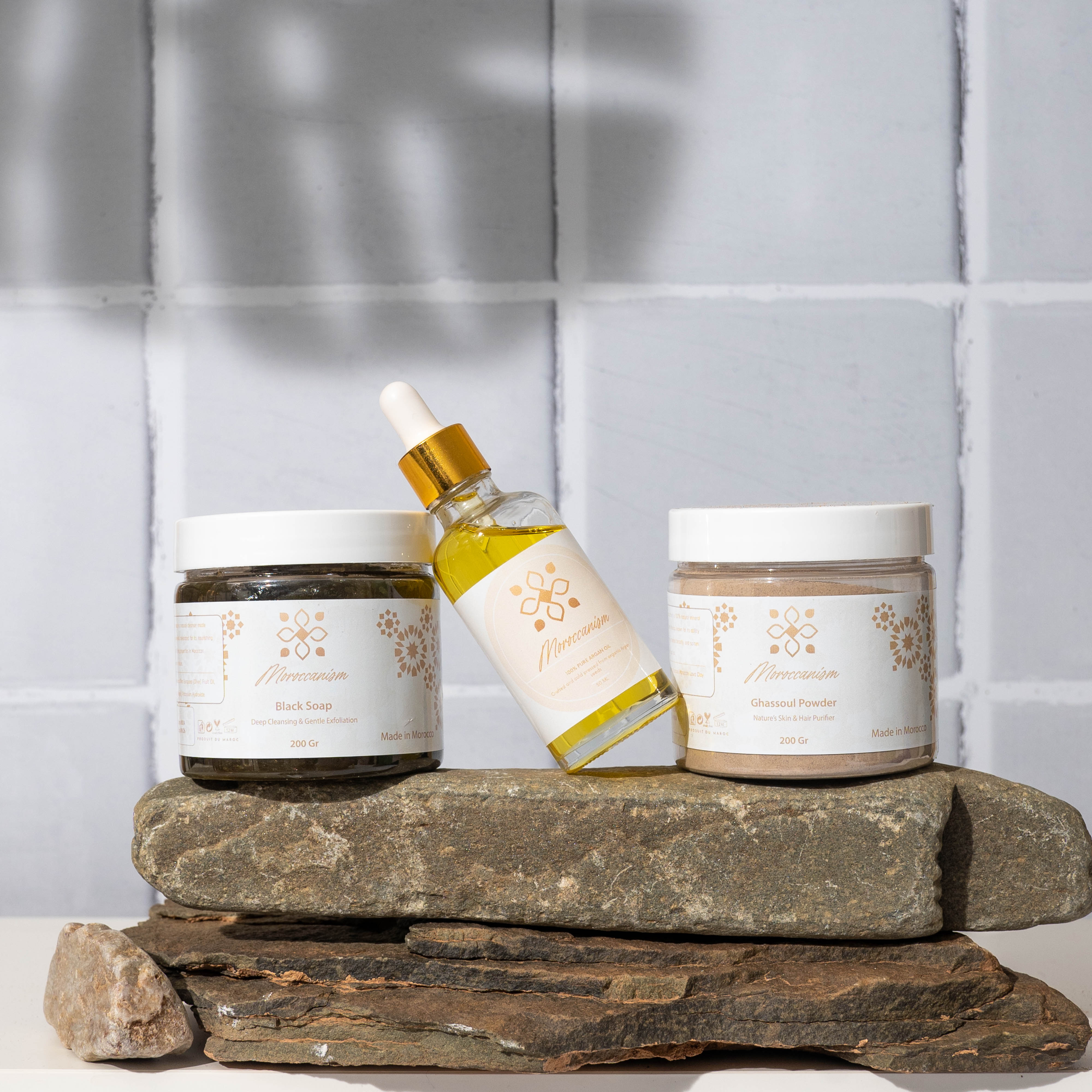 50ml Argan Oil + 200g Black Soap + 200g Ghassoul Clay