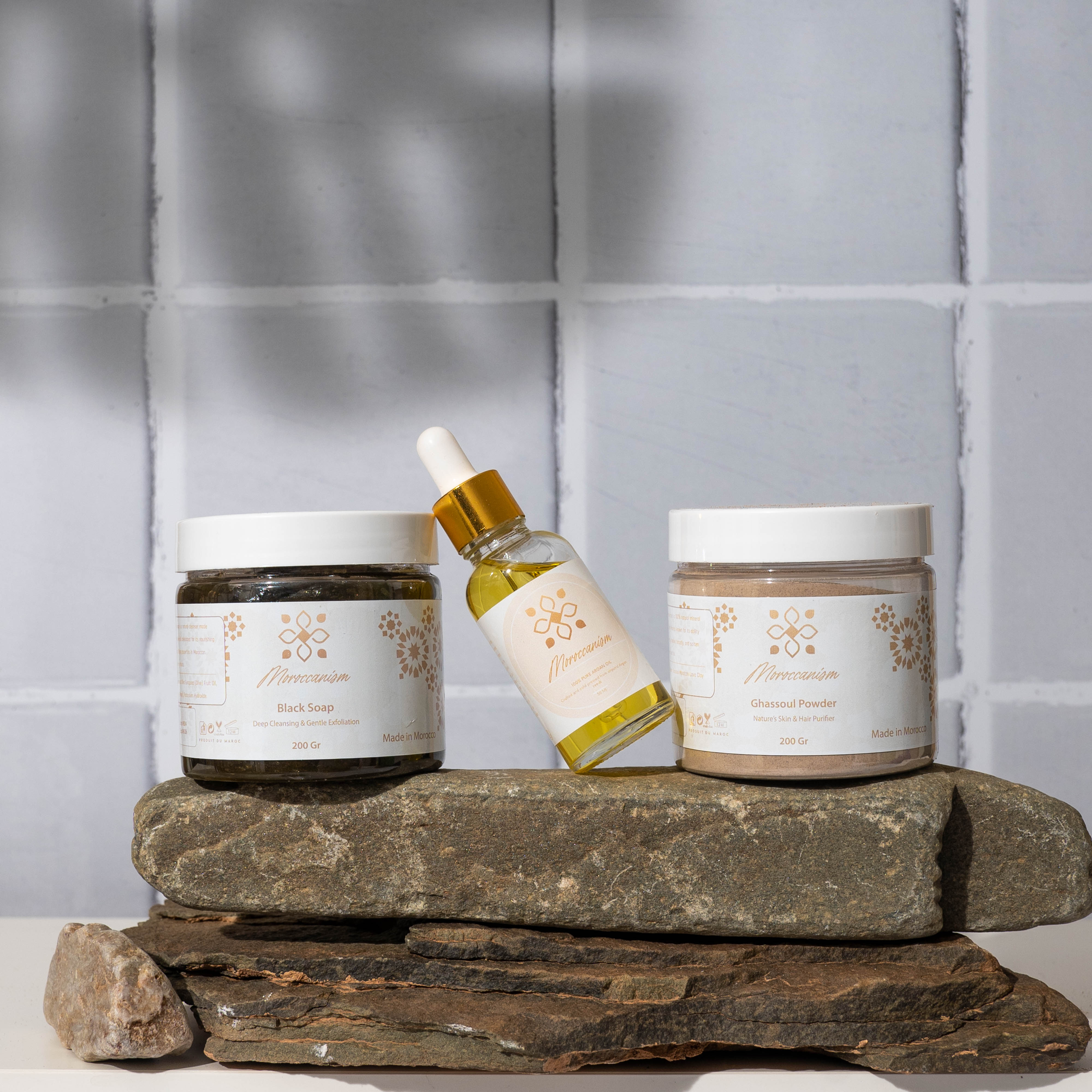 30ml Argan Oil + 200g Black Soap + 200g Ghassoul Clay